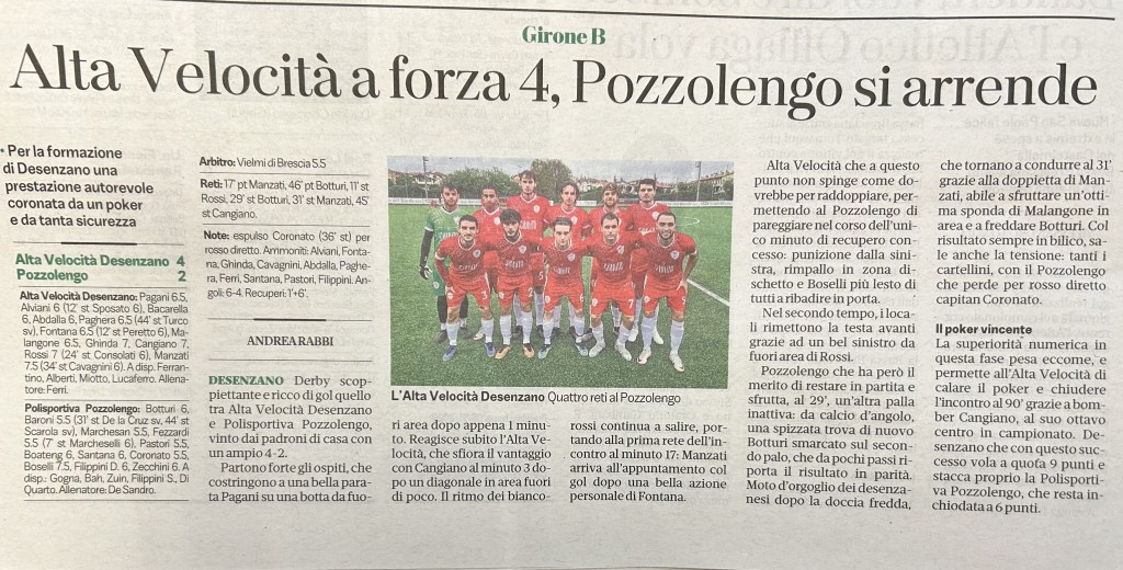 Nella stagione 2009/2010 l’Alta Velocità patisce per la seconda retrocessione consecutiva ma, questa volta, la sfortuna e troppi errori arbitrali contribuiscono pesantemente. L’inserimento in rosa di una dozzina di nuovi ragazzi comporta un inizio di stagione balbettante ma, da Gennaio ad Aprile, la squadra diventa sempre più convinta e spettacolare a tratti. Nella regular season i Veloci si classificano al 5° posto, a due punti da chi li precede e a tre dal podio, con la condanna di lottare nel bagarre salvezza. Nei playout la pressione è più alta e i ragazzi di Usardi faticano a digerire sistematici errori arbitrali, l’unica soddisfazione arriva con il tennistico 6 a 1 inflitto a Panifici Rodella, uscita vittoriosa dal girone. Sugli scudi per tutta la stagione Capitan Martinelli in difesa, Angelo Gatto a centrocampo, Spadaro Sebastiano e Pipitone nel reparto offensivo. La sorpresa è sicuramente Xausa che contribuisce con un buon bottino di gol all’ottima fase centrale della stagione.