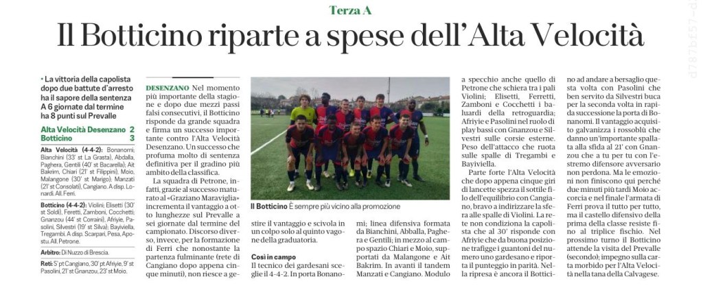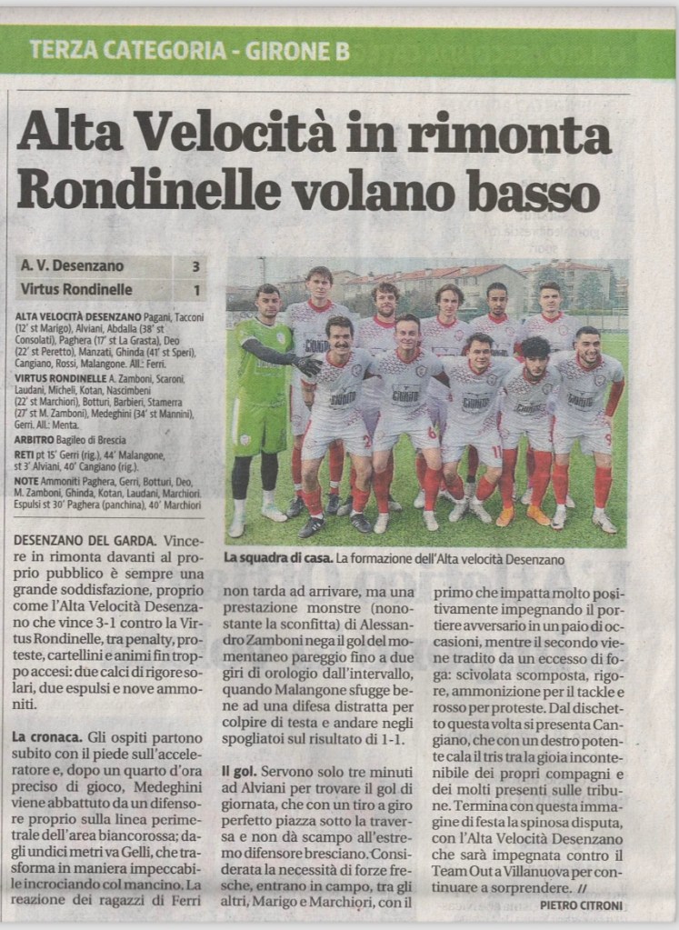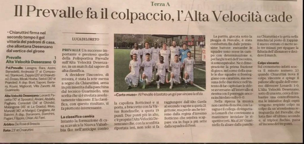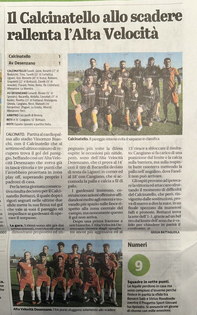La stagione 2023/2024 è stata quella del grande salto in FIGC. Una stagione che è iniziata in modo trionfale (9 -1 all’esordio contro il Calvagese), è continuata con qualche problema d’adattamento alla nuova Categoria, per poi finire in beffa, dato che all’ultima giornata solo la classifica avulsa ci ha impedito di partecipare ai Playoff per salire in seconda categoria. Un’annata più che positiva, quasi sorprendente, che ci ha visto come il miglior attacco della Categoria (con Cangiano capocannoniere).