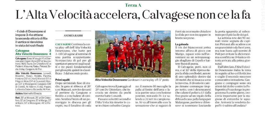 Un sogno, la passione ed una grande tenacia. Questi sono i tre elementi che caratterizzano la storia dell’A.C. Alta Velocità Desenzano e ne hanno permesso la continuità in questi anni. La società è nata da un’idea di Ramon Usardi che, fin da bambino, nutriva il desiderio di riuscire a riunire in un’unica squadra di calcio tutti gli amici più cari e tutti i ragazzi animati dalla stessa passione. Nell’inverno del 2001 Usardi, consapevole di dover affrontare ingenti spese per la realizzazione del progetto, decise di contattare tramite e-mail più di un centinaio di aziende desenzanesi e non, illustrando ad ognuna i propri intenti. A tutte le mail inviate nessuno rispose, eccetto il Sig. Farina, titolare dell’Immobiliare Farina; da quella sera il sogno cominciava ad avere basi più solide.