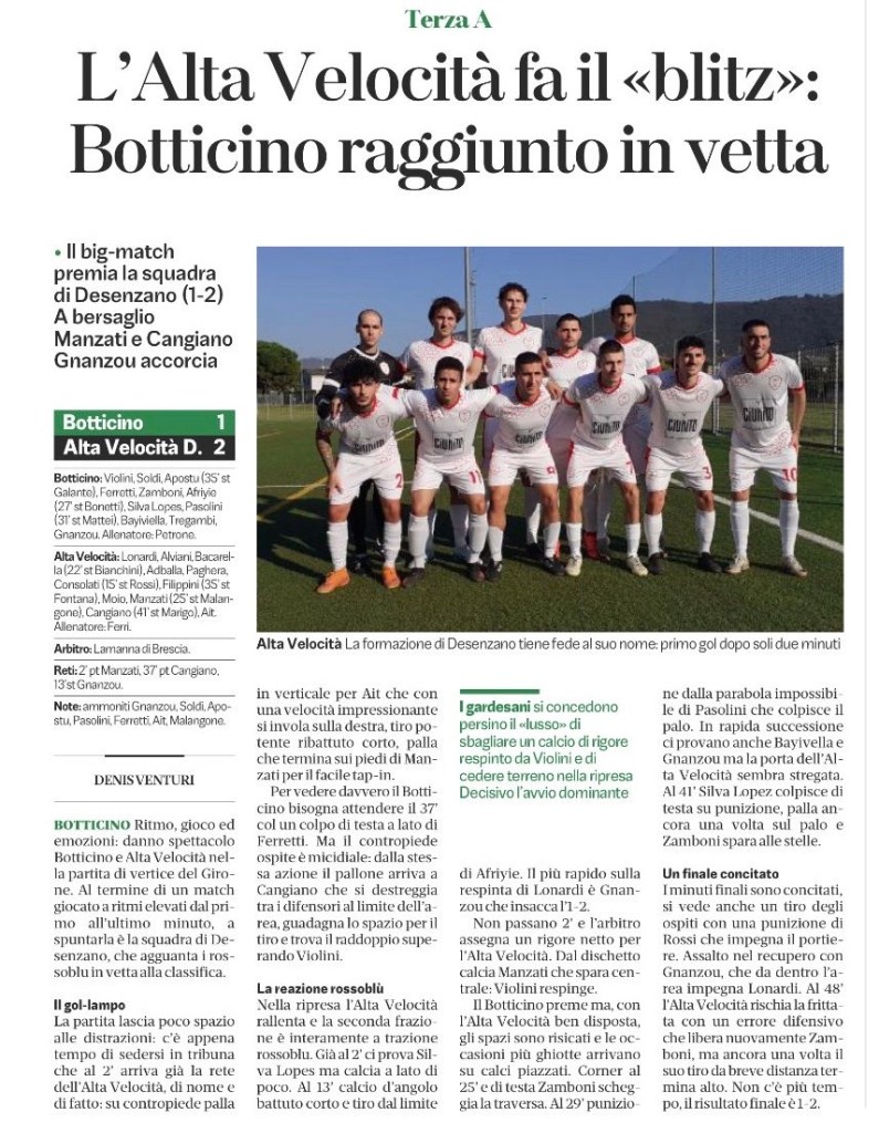 Anche la stagione 2020/2021 è stata fortemente condizionata dal Covid. I Veloci sono riusciti comunque a raggiungere ottimi risultati nonostante le difficoltà del momento. A Settembre registriamo la soddisfazione di estromettere dalla Supercoppa Uisp la compagine della Tau Metalli, e l’inizio roboante in Coppa Brescia (poi annullata). In Primavera ecco arrivare il secondo posto nel torneo Nazionale in cui, dopo aver vinto la regular season, ci siamo dovuti arrendere nella finale playoff contro la Rovizza Sirmione. Per quanto riguarda i singoli da segnalare i 17 gol stagionali di Cangiano, i 5 di Ghinda ed i tre di Rossi, Ferrantino e Deo.
